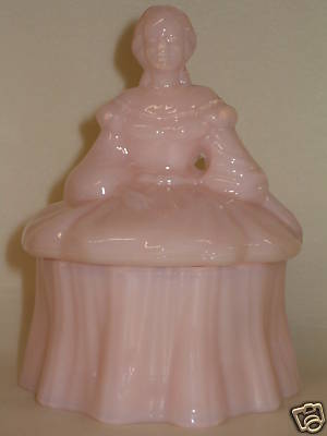PINK MILK GLASS DOLL POWDER / JEWELRY BOX CROWN TUSCAN