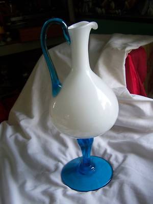 Vintage Aqua Blue & Milk LARGE ART Glass Pitcher/Ewer