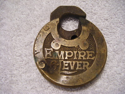 Title (ebay affiliate link): ANTIQUE EMPIRE 6 LEVER BRASS LOCK PANCAKE PUSH KEY PADLOCK NO KEY RARE !!!!!!!!
