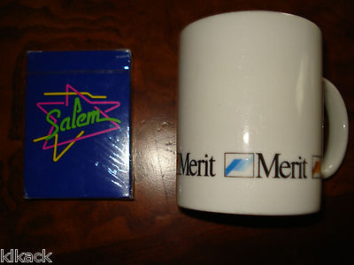 salem lot Deal Merit Ads Cigarette Mug Cup & NIP salem merit Deck Cards