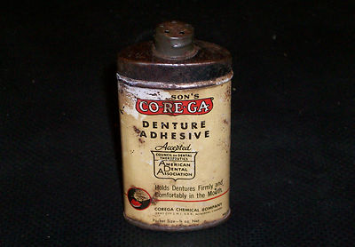 Title (ebay affiliate link): Vtg Wilson's CO-RE-GA Denture Adhesive Tin, Corega Dental Can, ADA, Jersey City