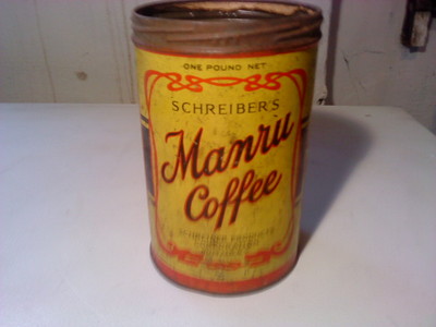 VINTAGE MANRU COFFEE TIN SCHREIBER'S BUFFALO NY