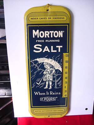 Title (ebay affiliate link): MORTON SALT - THERMOMETER - VINTAGE 1950'S - WHEN IT RAINS IT POURS -