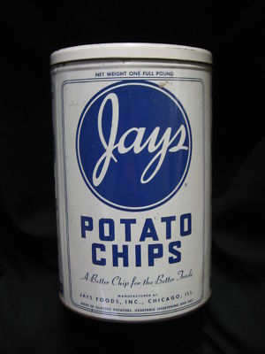 Title (ebay affiliate link): Vintage Jays Potato Chip Tin Canister ~ Chicago, Illinois ~ 11 1/2"
