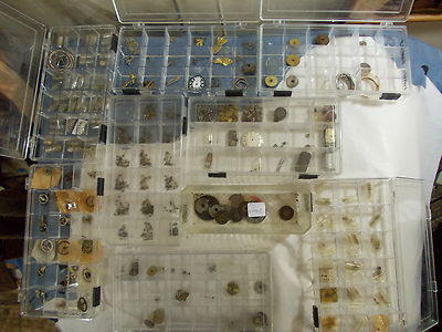 Title (ebay affiliate link): 8 BOXES OF POCKET WATCH AND CLOCK PULLEYS,PARTS,FLY CUTTERS,BITS AND PIECES