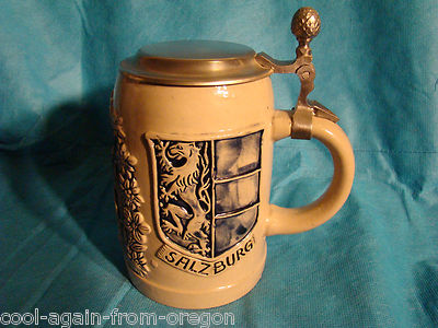 Title (ebay affiliate link): Vintage Original King Lidded Stein Mug Cobalt Salzburg Osterreich Beer Germany
