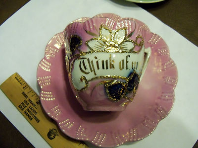 Germany china Cup and saucer Thinking of you on Pink rose backround