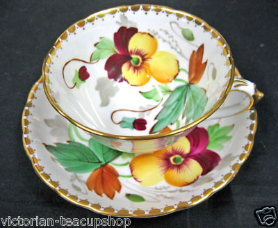 TUSCAN HAND PAINTED HVY GILT PANSY VICTORIAN'S TEA CUP AND SAUCER DUO