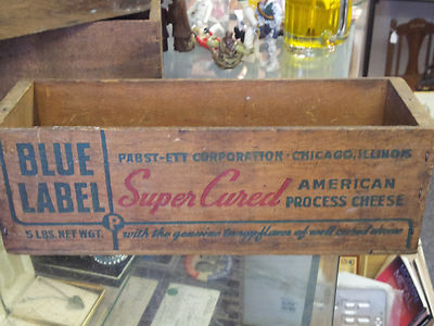 RARE ANTIQUE WOOD BLUE LABEL SUPER CURED AMER PROCESS CHEESE BOX PABST-ETT CORP