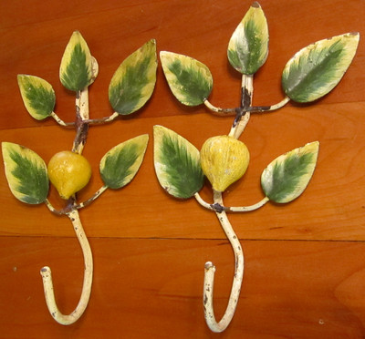 Title (ebay affiliate link): ITALIAN TOLE~PAIR (2) SHABBY~WALL HOOKS~LEMONS~FRUIT~OLD~COTTAGE STYLE~ITALY~NR!