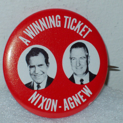 Title (ebay affiliate link): Nixon Agnew Red and White Jugate Pinback - 1968
