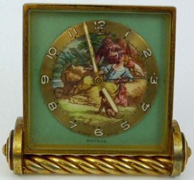 Title (ebay affiliate link): Antique Art Deco Alarm Swiss Benrus Brass and Enamel 8 day desk clock,c.1920