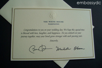 President BARACK Michelle OBAMA Congratulations on your wedding WHITE HOUSE Card