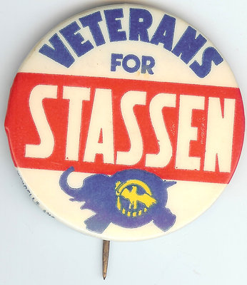 Vintage Veterans For Stassen Pin! Elephant w/ Eagle Logo