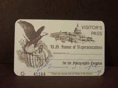 Title (ebay affiliate link): 98th CONGRESS - Original U.S. House Of Representatives Visitors Pass -