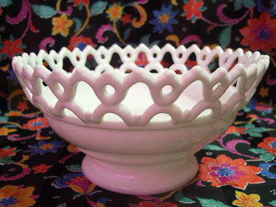 Title (ebay affiliate link): Vintage White Milk Glass footed bowl with Laced "Doric" Style **One Day Sale**