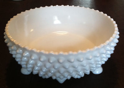 Title (ebay affiliate link): Vintage Fenton Hobnail Milk Glass 8 1/2" 3-footed Bowl w/ Mark- near mint