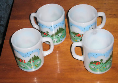 Title (ebay affiliate link): 4 ANCHOR HOCKING MILK GLASS D HANDLE MUG CUP WHITE SHEEP FARM COFFEE BARN SILO