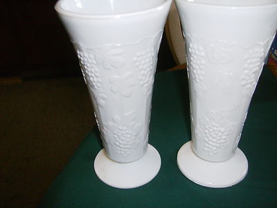 Title (ebay affiliate link): PAIR OF WESTMORELAND?? GRAPES ON A VINE DESIGN WHITE MILKGLASS VASES