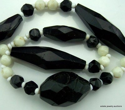 Title (ebay affiliate link): Vintage Necklace OLD White Milk Black Glass Crystal Bead Jewelry Costume - Prett