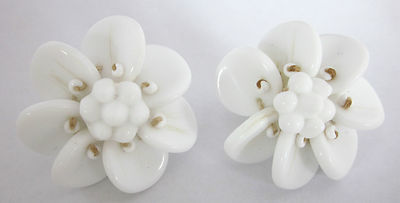 Vintage Milk Glass Bead Flower Earrings
