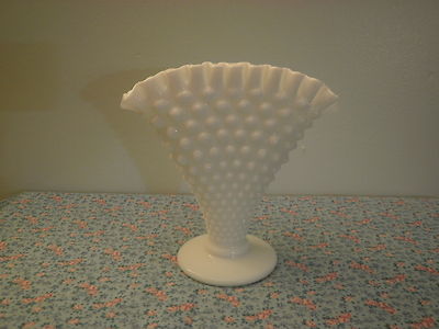 Fenton Milkglass Hobnail 6" Tall Fan Vase.