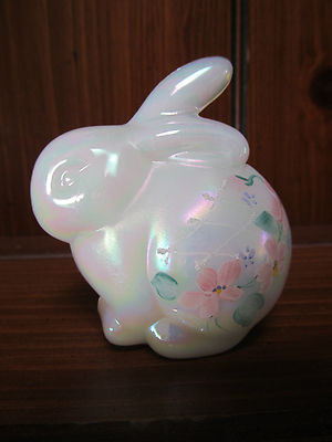 Title (ebay affiliate link): Fenton Milk Glass French Opal Satin Bunny Rabbit Figurine Hand Painted Meeks