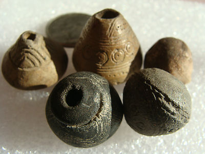 LOT OF 5 ANCIENT MANTENO CULTURE PRE-COLUMBIAN SPINDLE WHORL BEADS ECUADOR CERAM