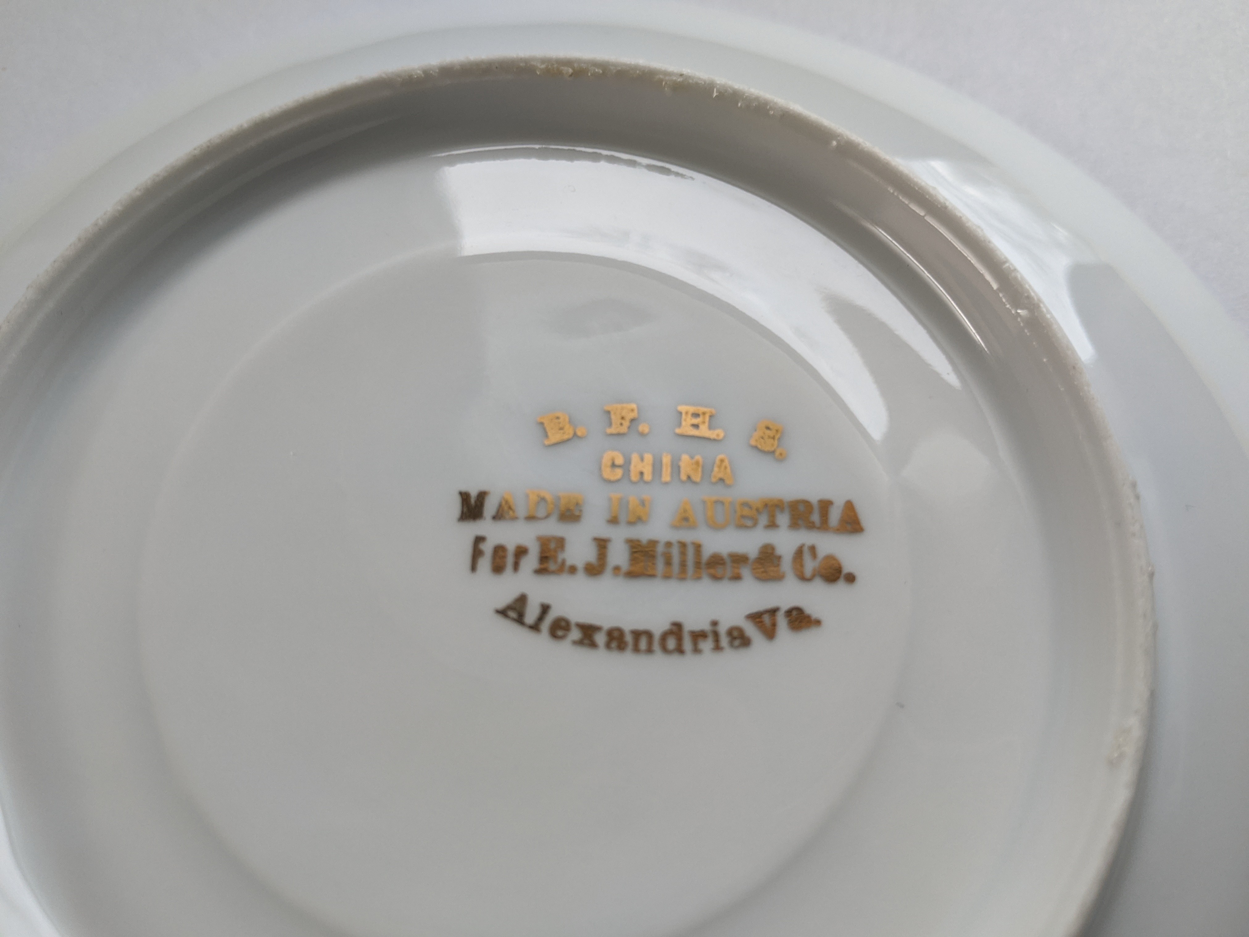 Antique Cup and saucer of the Carlyle House – Made in Austria for E.J. Miller and Company, 119 King Street, Alexandria, VA