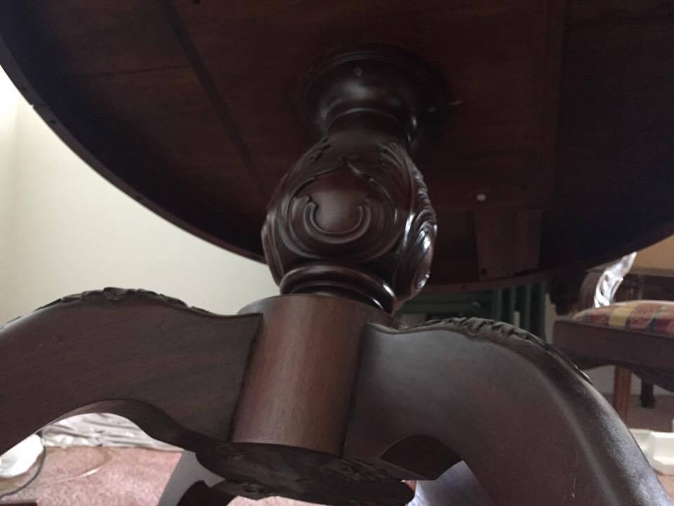 The table also has a middle piece extender where the table pulls apart from left to right and the middle rectangular piece is placed in the center to create a larger sized table. I didn’t get a picture of the middle piece as it was just found in storage.