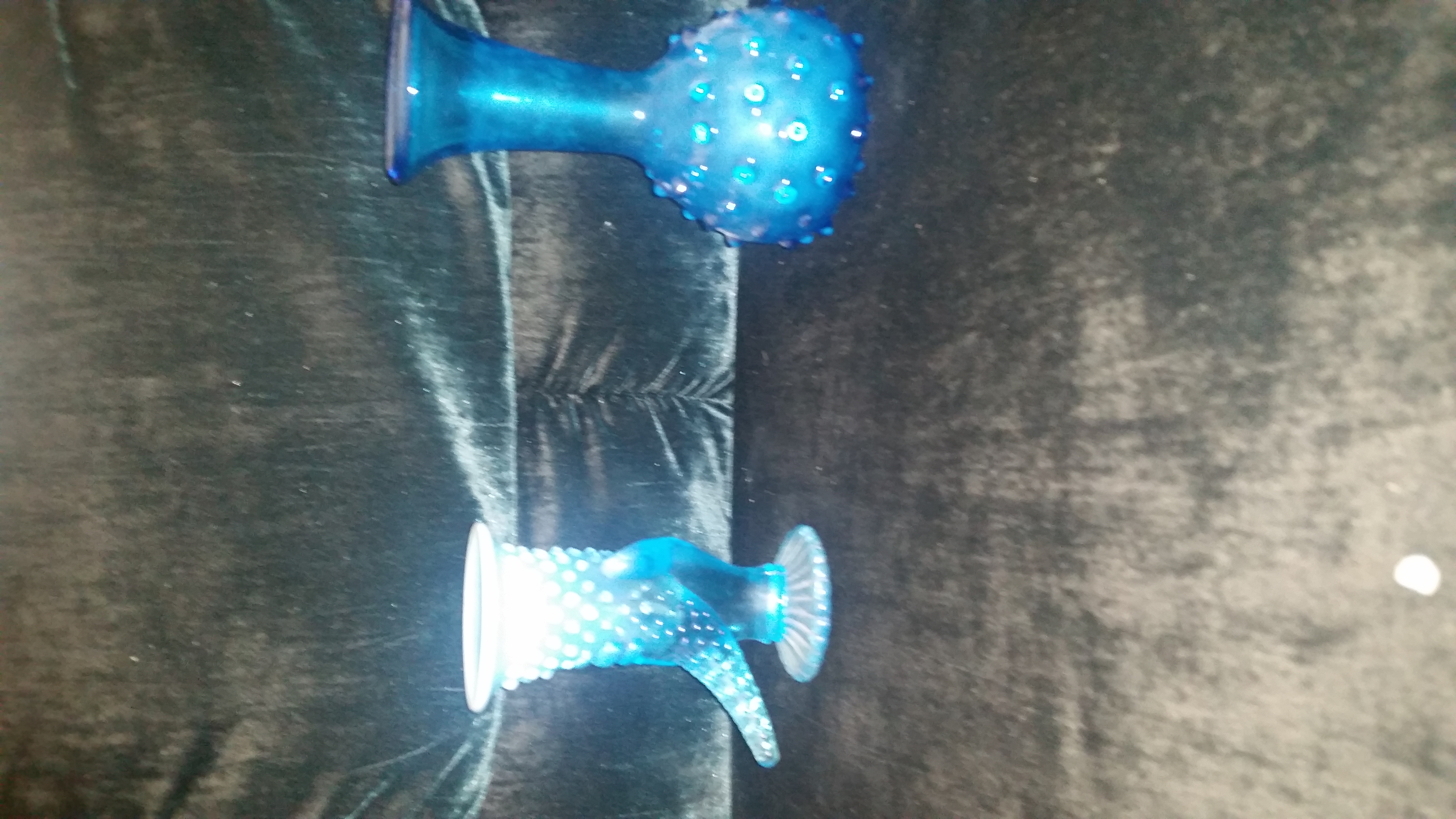 Your Fenton Hobnail Vase and Fenton Blue Daisy & Button Cornucopia Hand Vase are estimated between $25 to $30 each. I also have a Fenton hobnail vase and I thought they were worth more. I would suggest selling on e-bay if you really want to sell them depends on the sentimental value.