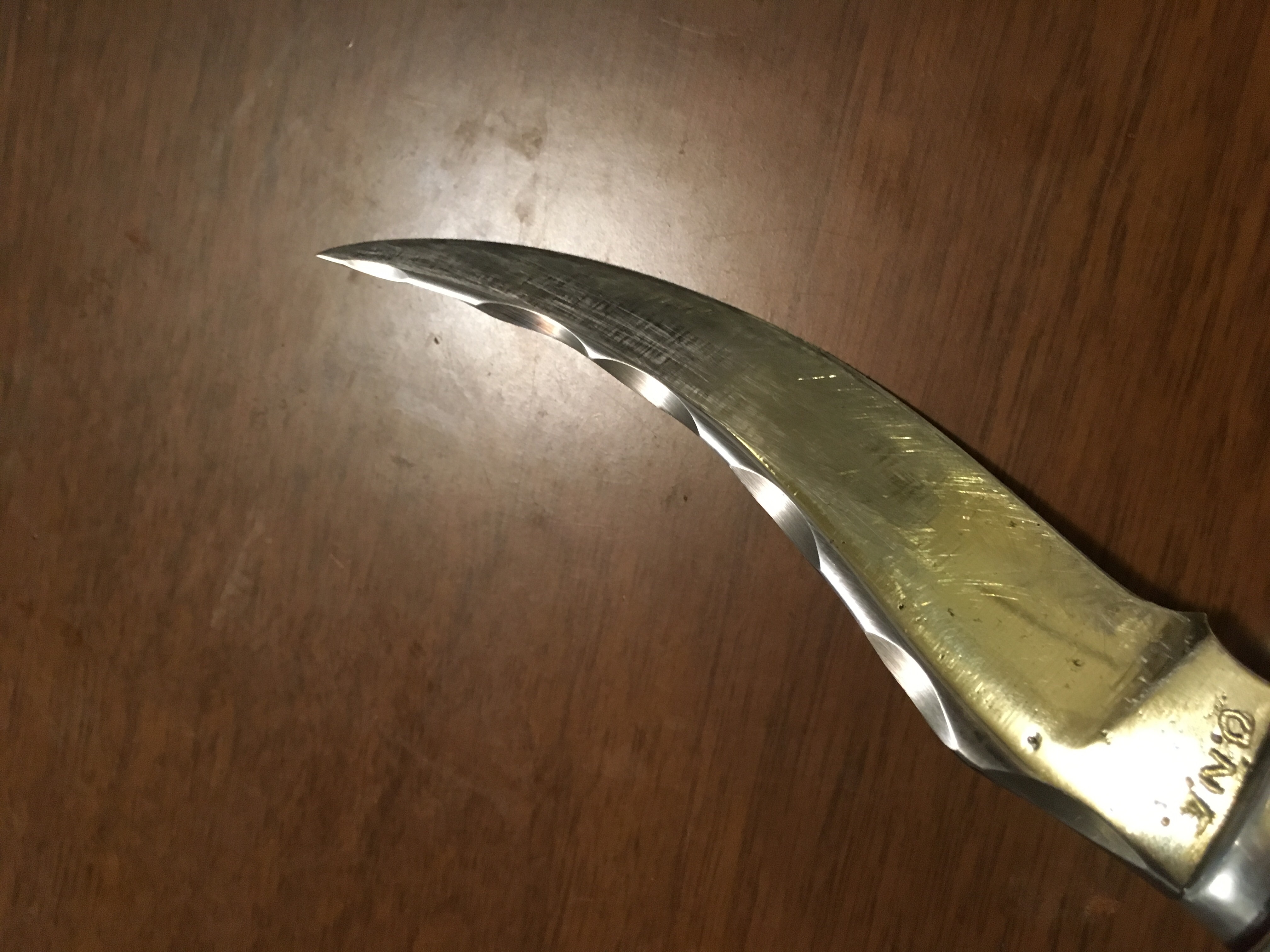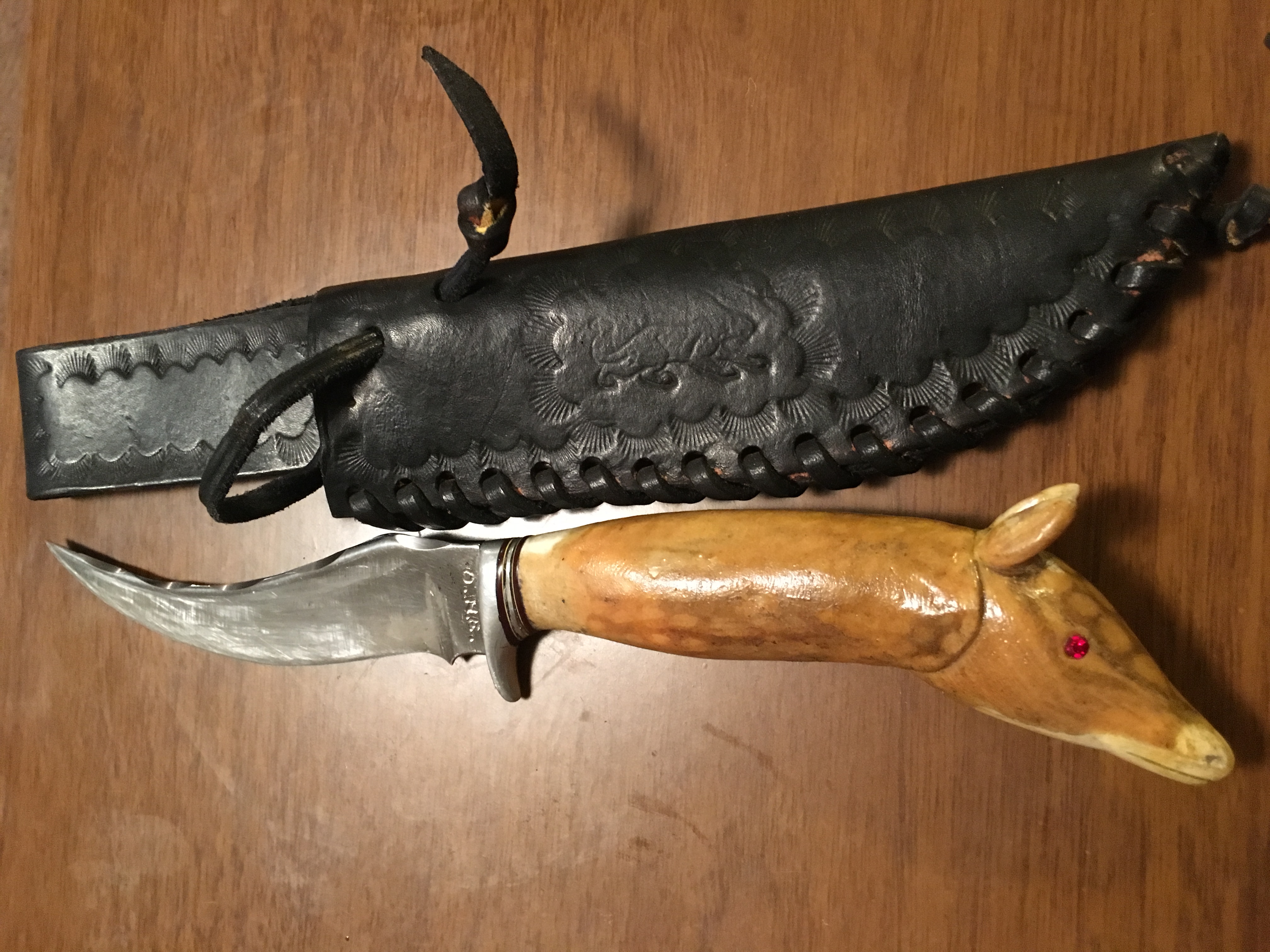 I don’t know anything about this knife. It was given to me by a friend who inherited it from his grandfathers collection. The handle is bone and I believe it’s an armadillo that’s carved into it at the base.the top of the blade has a hammered finish. It’s stamped O.N.E. just above the hilt. I’m just curious what it’s worth so I can tell him.