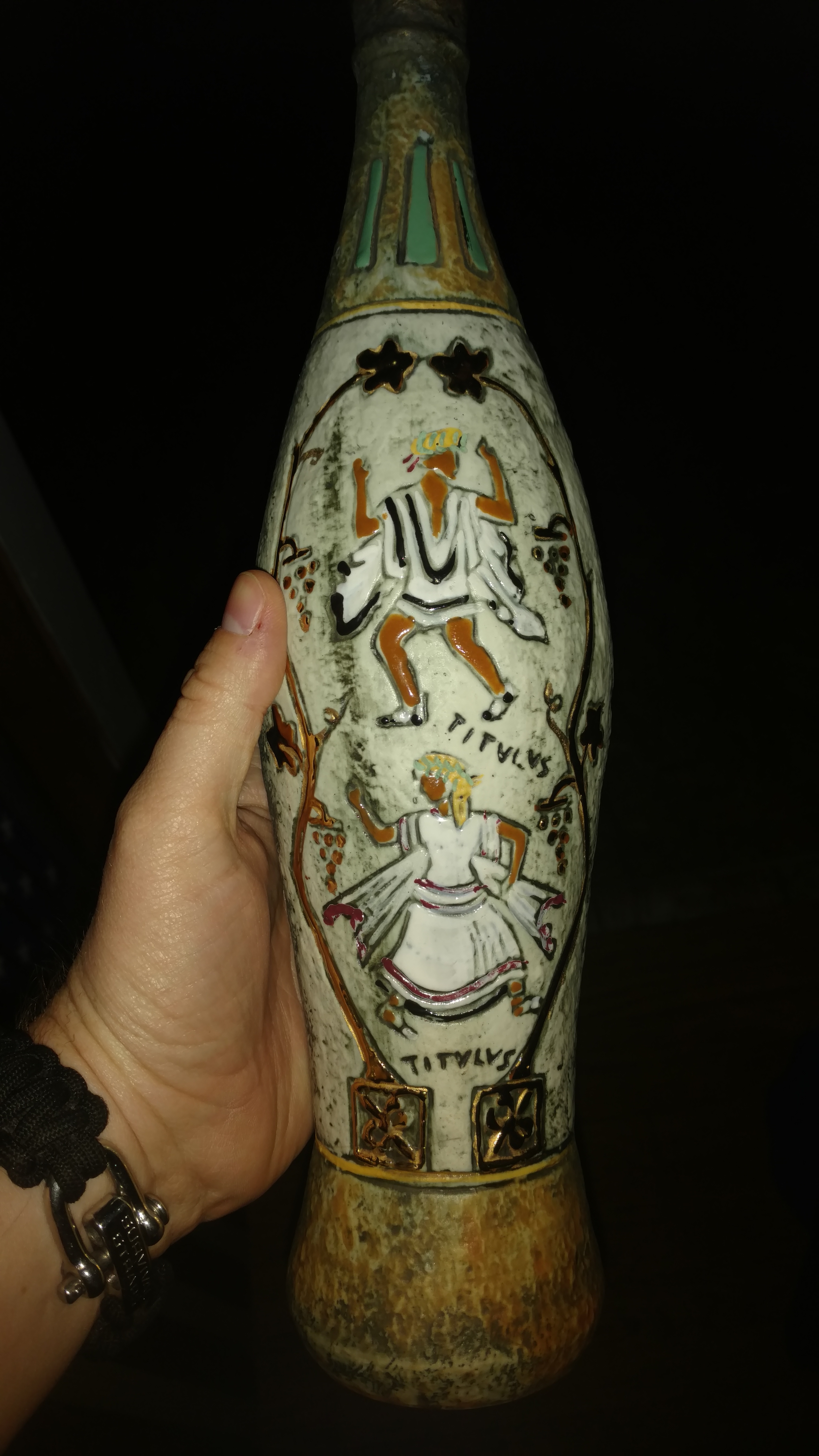 Picked up this handmade hand painted wine bottle from an estate sale a few weeks ago. It doesn’t appear to having any markings, but the previous owner said they lived in the house for over sixty years and it was there when they moved in. Interior has been glazed if that helps. Any help would be greatly appreciated.