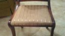 ParticipantThe table made of dense grained mahogany is in excellent condition. It was purchased in the mid 1950’s used by my husband’s parents. The table is 64 inches long, 42 inches wide and 29 inches tall. The table has 5 leaves each 12 inches wide. Table will expand to 74, 86, 98, 110 or 122 inches long with leaves. The Brass toe trestle style double legs split and expand to provide support when table is expanded. There are 6 chairs