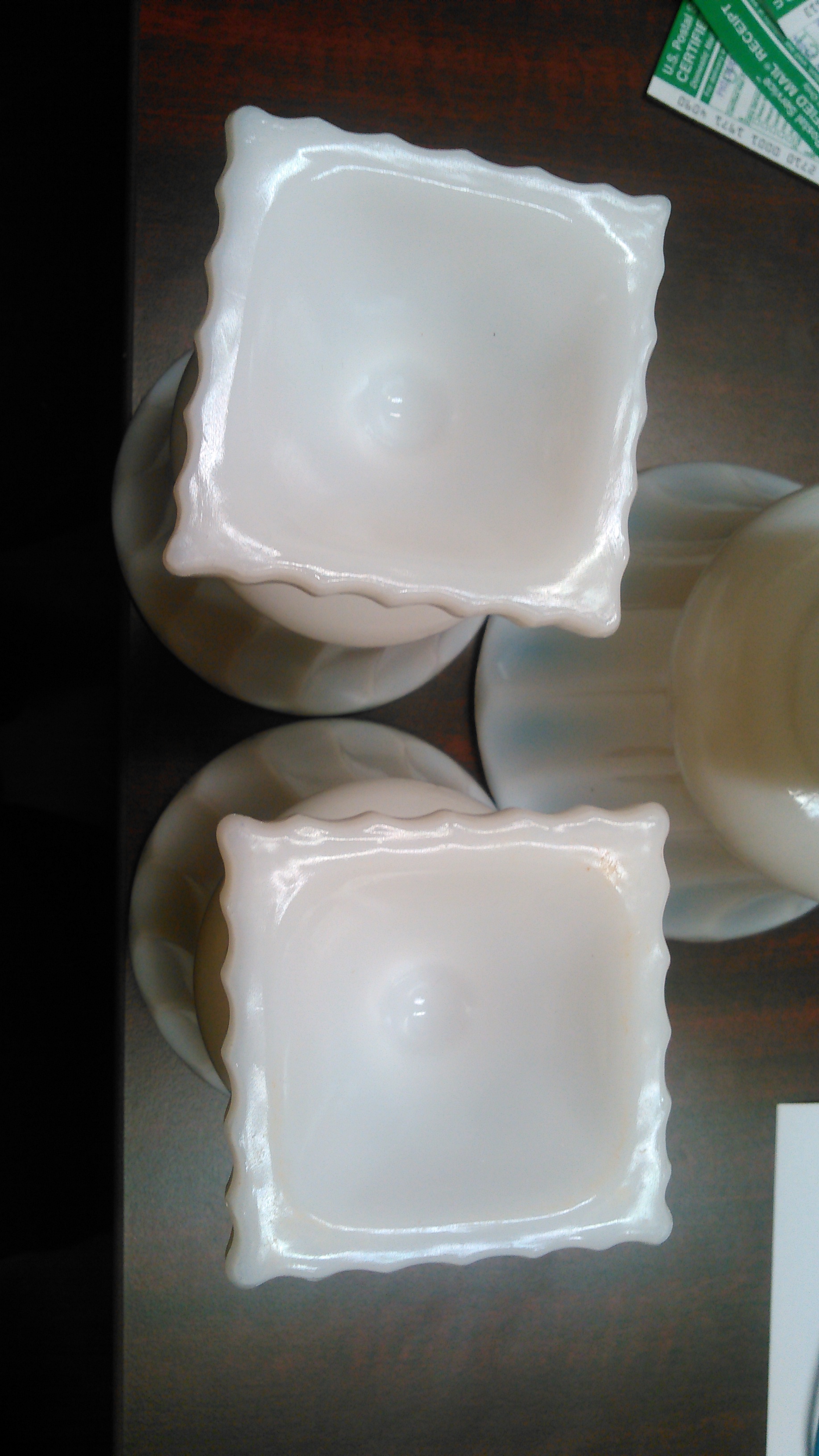 No makers marks on the bottoms. Ribbed pattern on cup area. Bases are square 3″x 3″