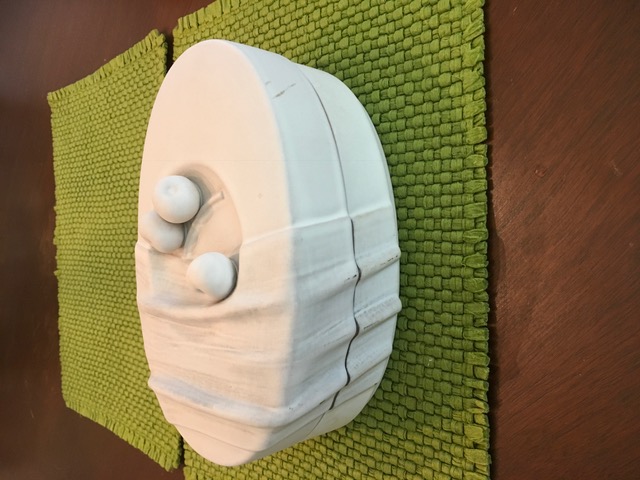 the cover is shaped with three ’round fruits’