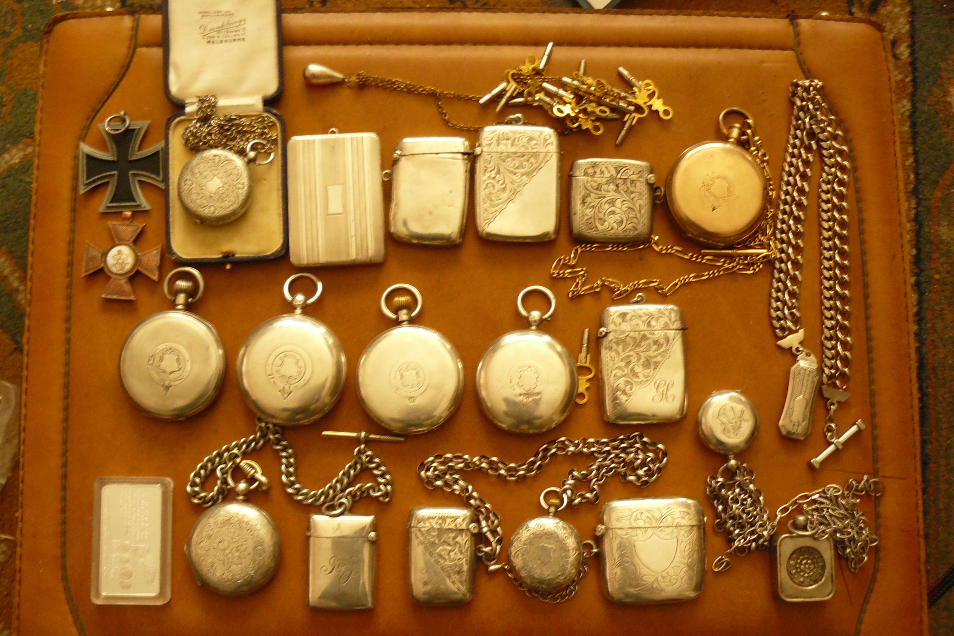 Participanthi , Can anyone help me with what these may be worth .I got these from a relative some months ago and i thought it was time to see if they are worth anything .Can anyone help please?All the items are stamped .all the watches work .But i don’t know what the stamps mean ..how much they are worth ..or how old they are ..??