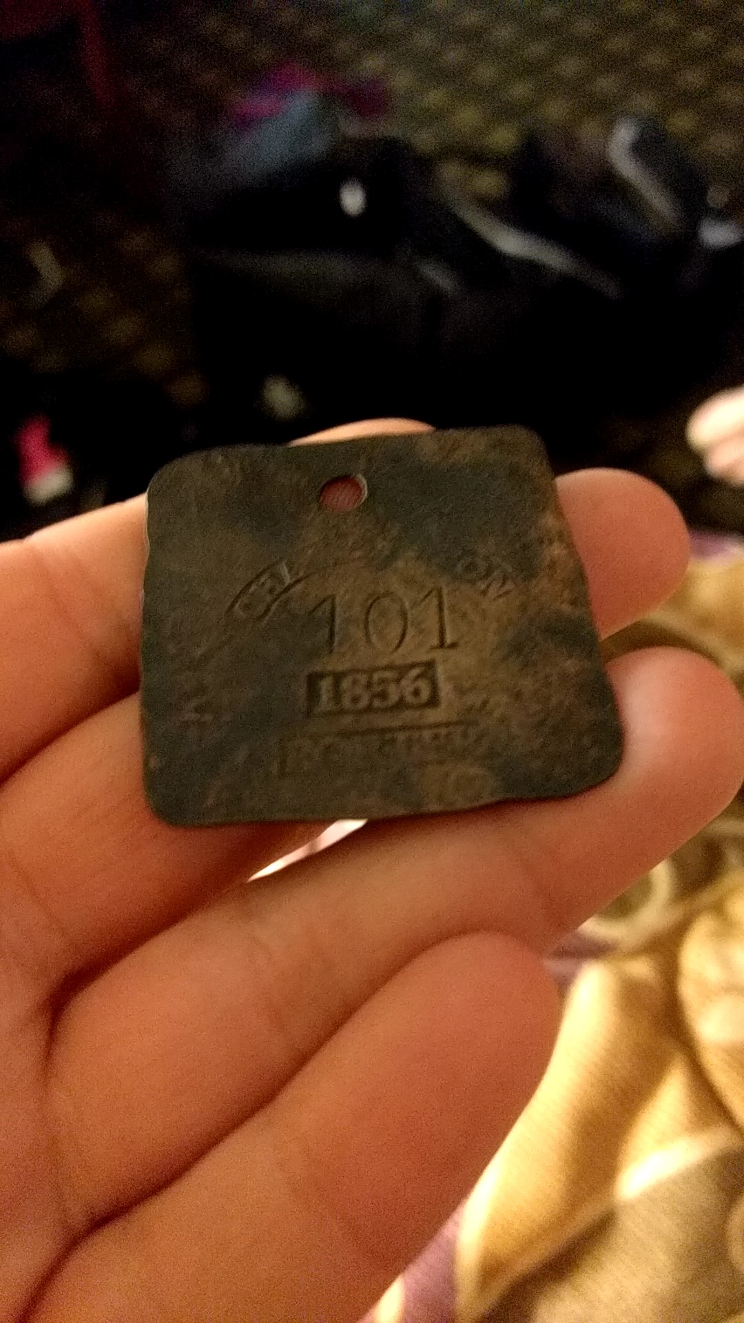 I want to know if this slave tag is authentic from Charleston in 1856 the title of the slave was a Porter. It also has the slave number on it someone please tell me if it is authentic or not