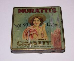 Art Deco Old English MURATTI'S Young Ladies Litho Cigarettes Tin Box