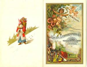 Lg Victorian Trade Card,New Year 1885,Kregs Lithographing,Cincinnati,Santa Claus