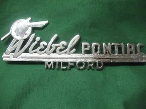 Vintage Chrome Metal Auto Dealer Emblem WIEBEL PONTIAC MILFORD