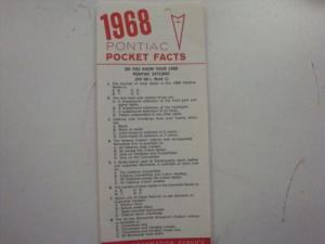Pontiac 1968 dealer-sales person pocket facts 6 page fold out-GTO,Firebird