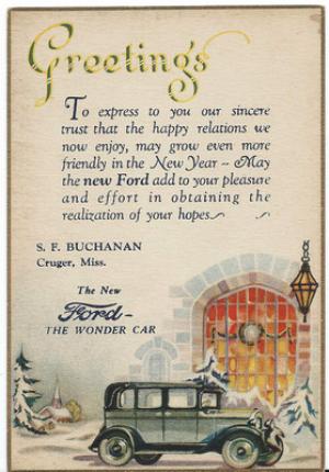 Vintage 1920's Ford New Year Card, S.F. Buchanan, Cruger, Miss.