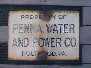 Antique Porcelain Pennsylvania Water and Power Co. Sign Holtwood PA Old Penna.
