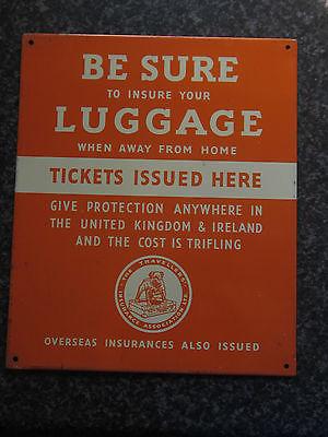 1930'S RAILWAY TRAVEL INSURANCE SIGN. METAL BOX CO. LONDON.