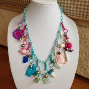 Vintage 80's bell clip plastic charm necklace record helicopter feet telephone