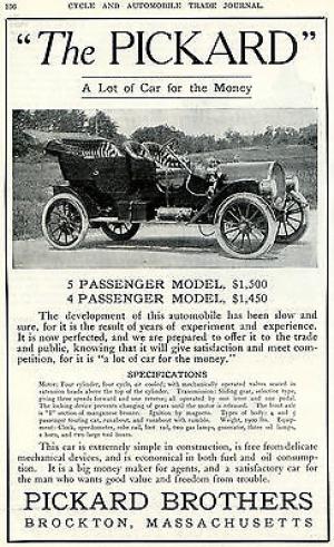1908 PICKARD CAR AD PICKARD BROTHERS BROCKTON MASSACHUSETTS