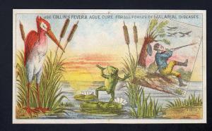 1800s TRADE CARD FROM COLLECTION - COLLIN'S AGUE CURE - Frog & Hunter