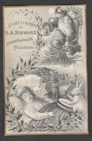 VICTORIAN TRADE CARD G.A. SCWARZ SANTA IN DREAM 18880