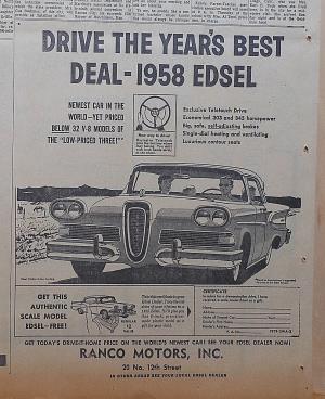 1958 newspaper ad for Ford - Edsel Citation, Year''s Best, get Edsel scale model
